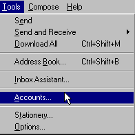 1 1.First open Outlook Express. When the program opens click on Tools in the menu bar. 2.Click on Accounts